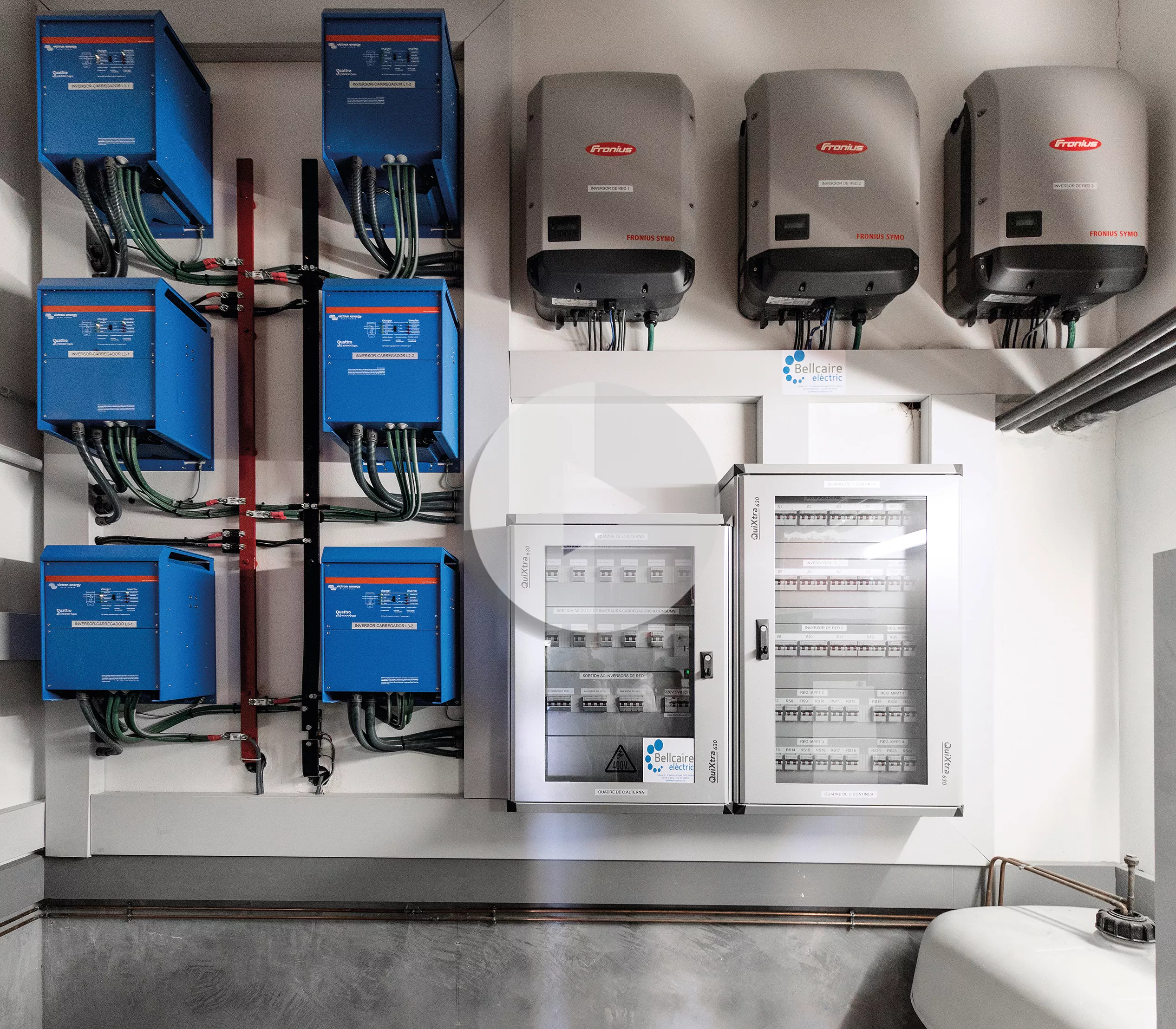 During the day, the Fronius Eco supplies the energy produced from the PV modules directly to the company’s loads. Surplus energy is stored in the battery via the Victron devices.