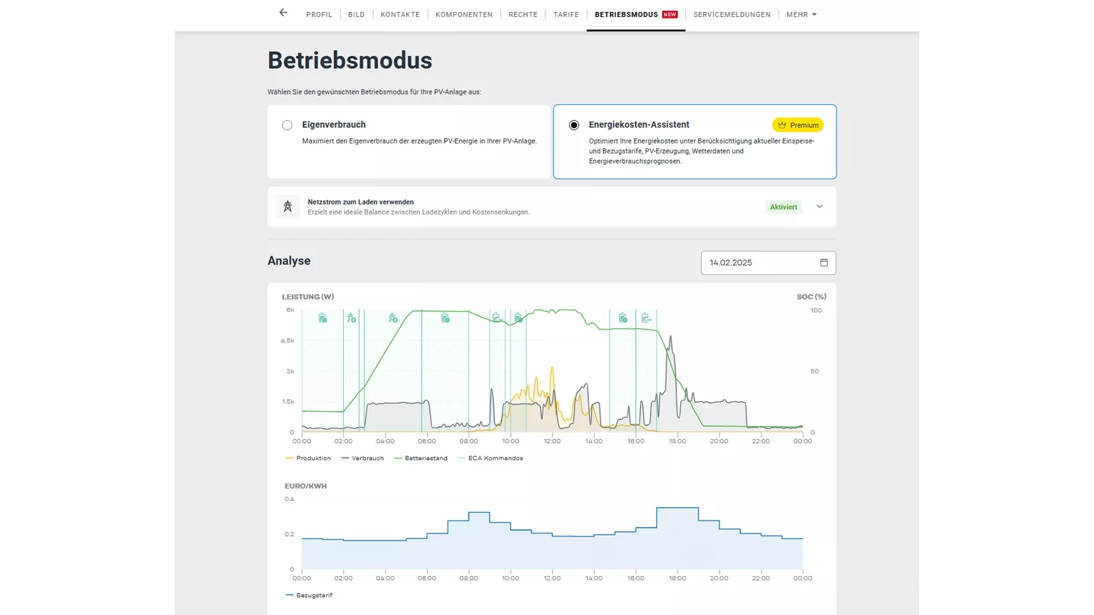 Der Energiekosten-Assistent kann jedoch auch ohne die Funktion, die Batterie aus dem Netz zu laden, aktiviert werden. Hierfür sind keine besonderen Rahmenbedingungen notwendig.