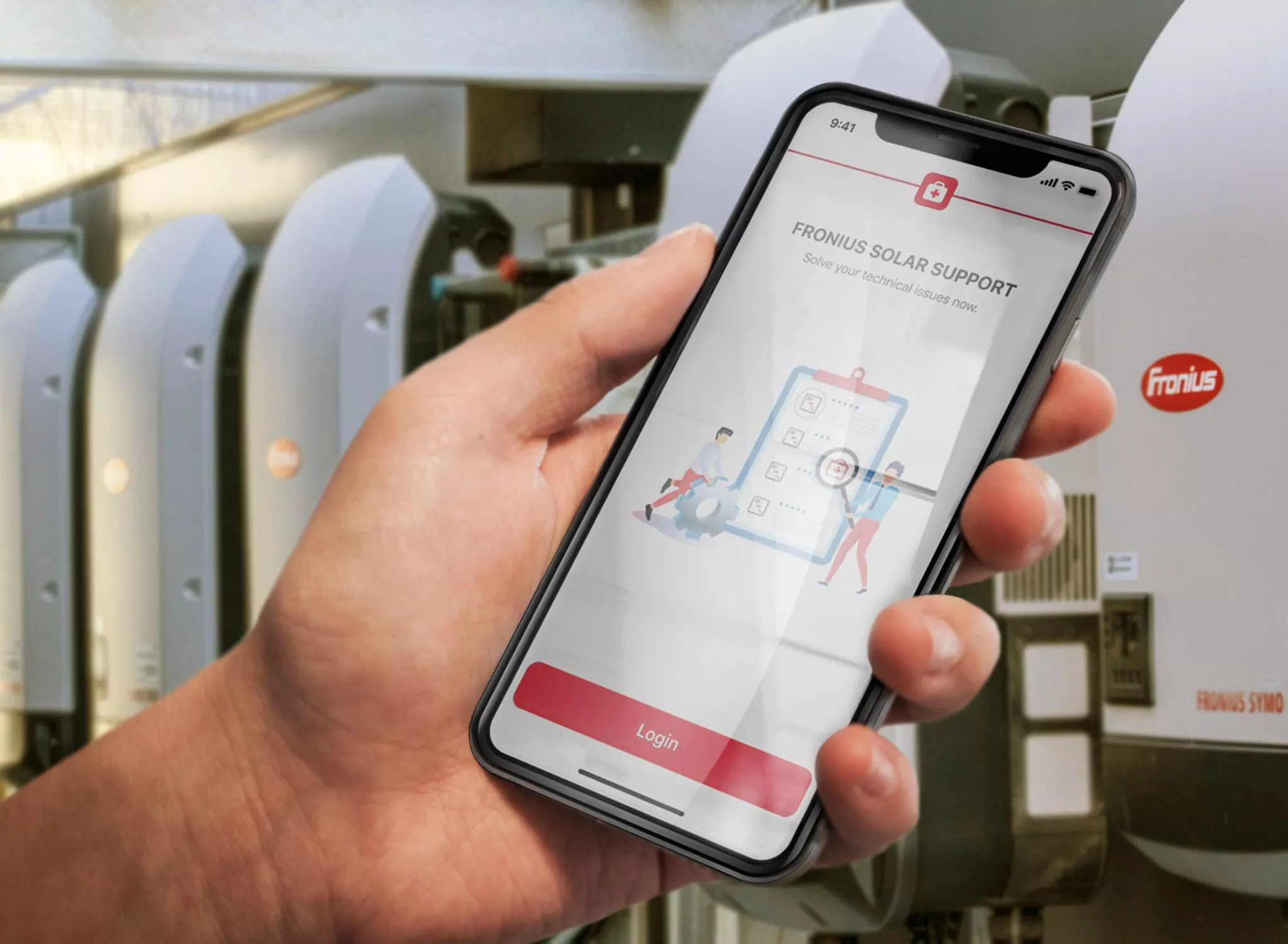 S online nástrojem Fronius Solar.SOS ve verzi pro stolní počítače a ve verzi aplikace pro iOS a Android společnost Fronius nastavila nové standardy servisních procesů.