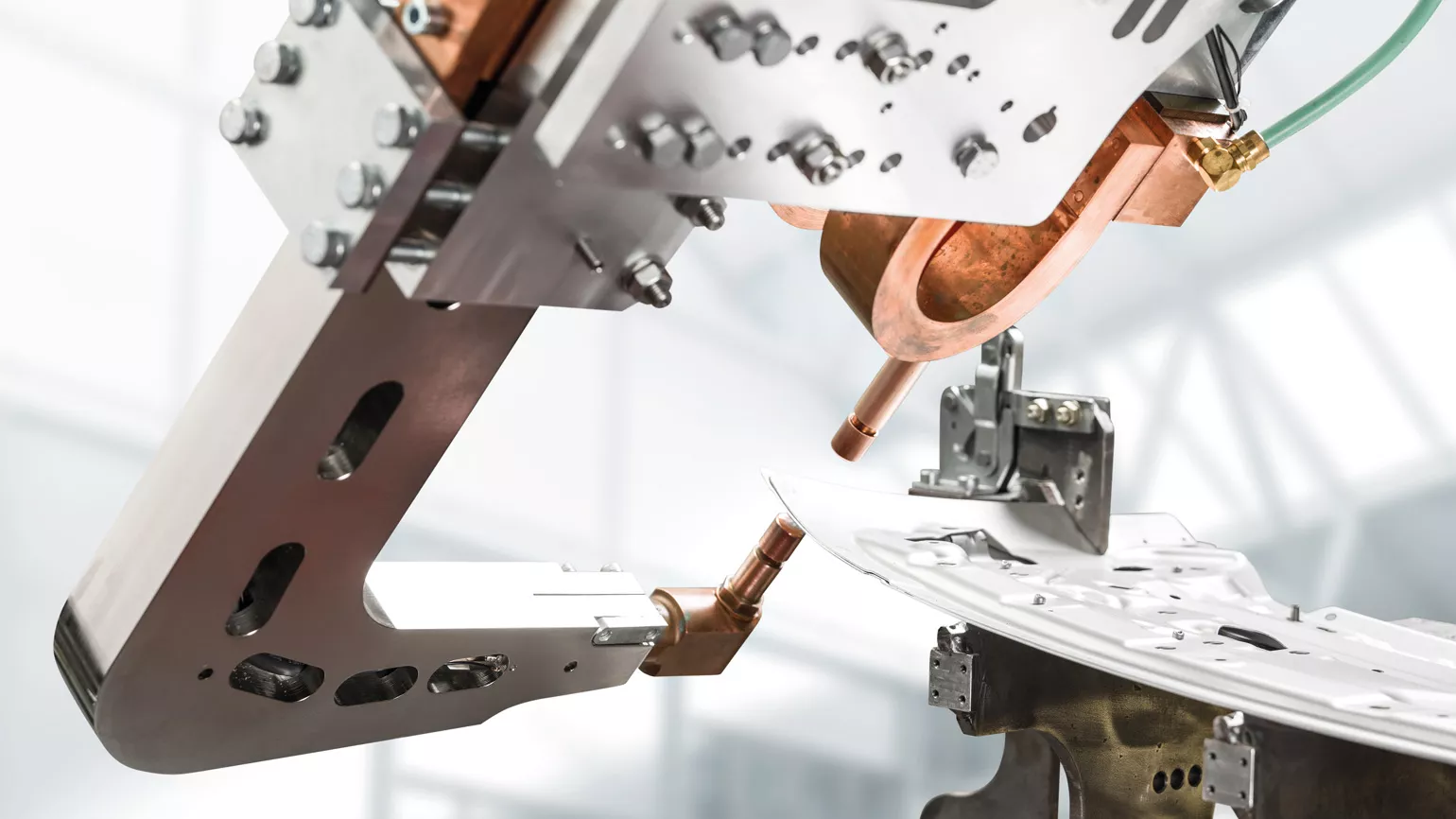 Für das konventionelle Widerstands-Punktschweißen hat Fronius eine neue Generation von Schweißzangen entwickelt: DeltaCon. Das Punktschweißen von Aluminiumblechen lässt sich damit wirtschaftlich und einfach realisieren. DeltaCon ist in verschiedenen Versionen mit und ohne Zangenausgleich erhältlich und sowohl in der X- als auch in der C-Geometrie mit den gleichen Hauptkomponenten modular aufgebaut. Damit können Benutzer flexibel eine Vielzahl von Schweißaufgaben lösen. Die schmale Bauweise stellt eine gute Zugänglichkeit auch bei beengten Platzverhältnissen sicher.