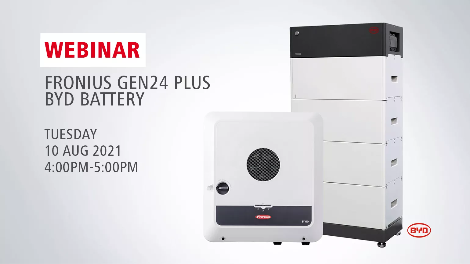 The Fronius GEN24 Plus series is the versatile hybrid inverter range featuring integrated backup power that is available now alongside its seamless integration with BYD Batteries! This training session will be very beneficial in ensuring you become an expert in these two solutions and know how you can implement these products to provide your customers with the highest quality systems.
