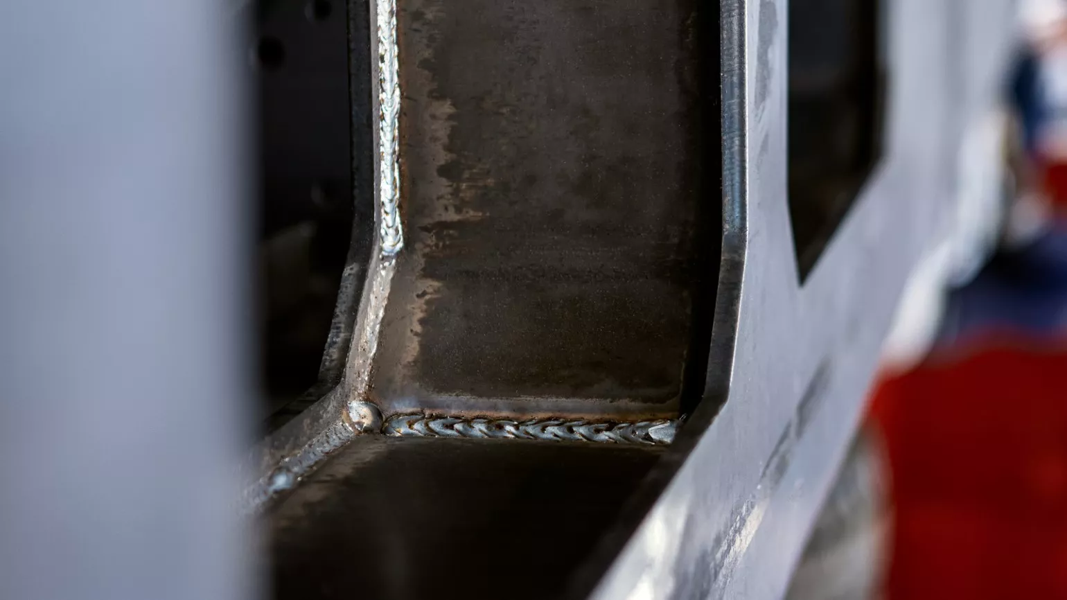 The TPS 400i is equipped with intelligent control systems that allow precise adjustment of welding parameters. Penetration and Arc Length Stabilisers ensure consistent weld quality by maintaining the desired penetration and arc length, which aids in controlling the heat input more effectively. The TPS/i can be customised with various software packages to meet specific welding requirements. The Pulse feature is typically used at Fruehauf to ensure the thicker top rail receives sufficient heat for fusion, while the thinner panel is protected from overheating. Pulse technology enables the arc to alternate between high peak current and a low background current. This reduces heat input, minimising distortion and burn-through, which is especially critical when welding thin to thick materials. The controlled droplet transfer in pulse mode also reduces spatter and enhances weld bead appearance.