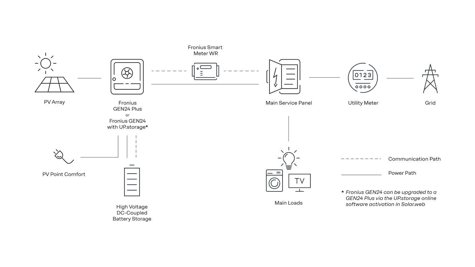 PV Point Comfort enhances the capabilities of our GEN24 and GEN24 Plus inverters by providing a permanent power supply for a branch circuit connected directly to the inverter, both during grid outages and in parallel grid operation.PV Point Comfort is designed to ensure that critical appliances, such as refrigerators, freezers, and alarm systems, always remain powered. Unlike PV Point, which comes standard in all GEN24 models, PV Point Comfort is an enhancement that provides grid-pass through to ensure a consistent power output to the branch circuit in any grid condition. It can easily be retrofitted into existing Fronius GEN24 and GEN24 Plus systems, making it a smart and space-saving upgrade.