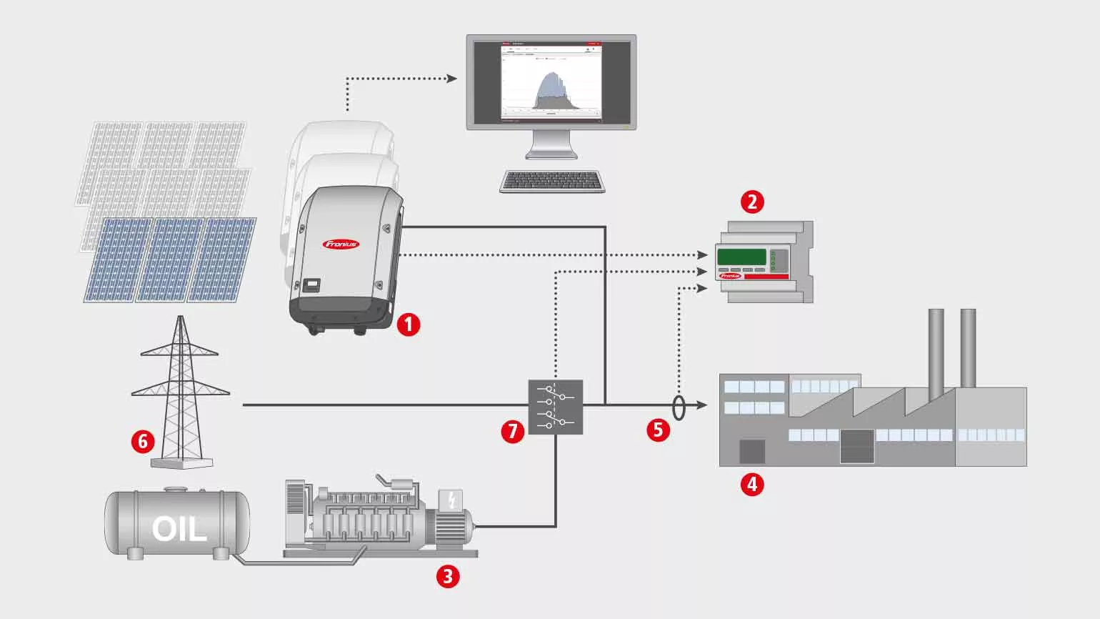 Integrating photovoltaic systems into diesel generator-powered grids requires quick and reliable control of the entire system. The Fronius PV system controller measures all power flows in the system, enabling it to control the PV power in the most optimum manner.