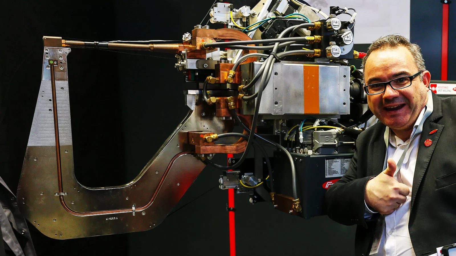 However, one is particularly proud of the DeltaSpot. Worldwide, these special guns constitute the only resistance spot welding system with intermediate belt electrode ('dynode', or process belt)!