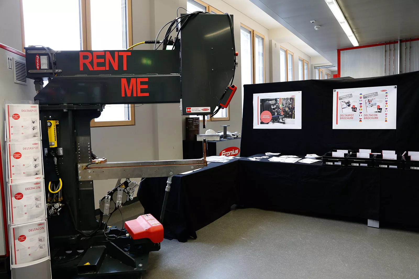 ... is the Fronius answer. The futuristic DeltaCon welding guns (conventional spot welding) ensure the massive traction required, for example, in aluminium spot welding. The DeltaCon can expend thereby up to 8 KN of pressure, about the weight of a small car. Also with the Product News the heavy cannon is driven up: The RSW department shows the robot-controlled DeltaCon welding gun right away, in two combined live applications: