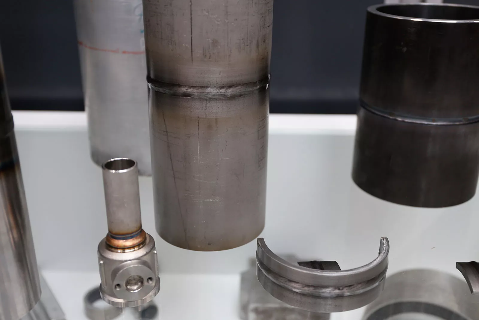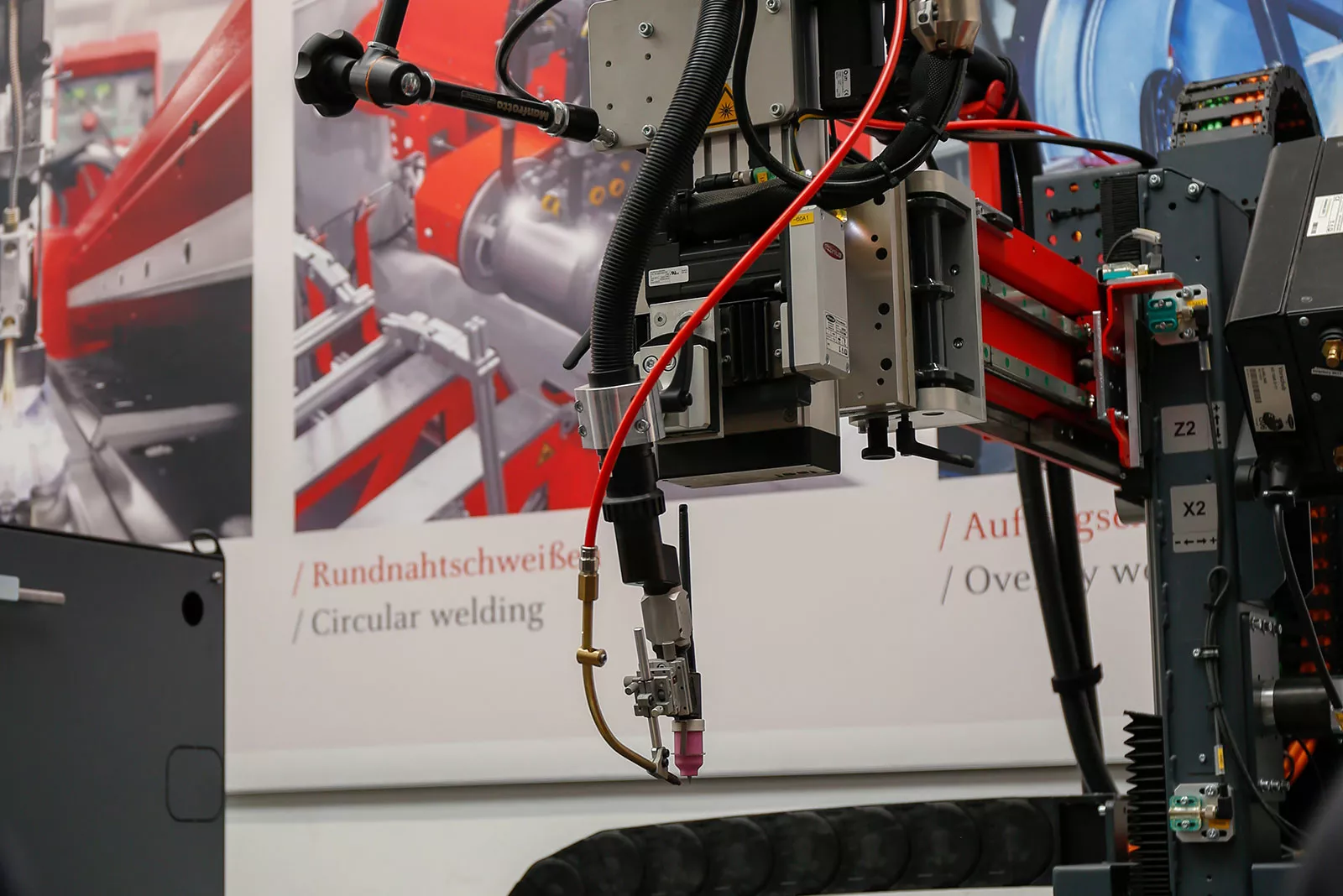FCWcompact – the name says it all. The compact circular seam welding system (FCW) can weld components up to 1000 millimeters wide and with a diameter between min. 50 mm and max. 500 mm. The maximum component weight is 300 kg. This welding process was demonstrated at the event on a chrome-nickel pipe with a diameter of 115 mm and a wall thickness of 6 mm. The demonstration highlighted three key features of the system: