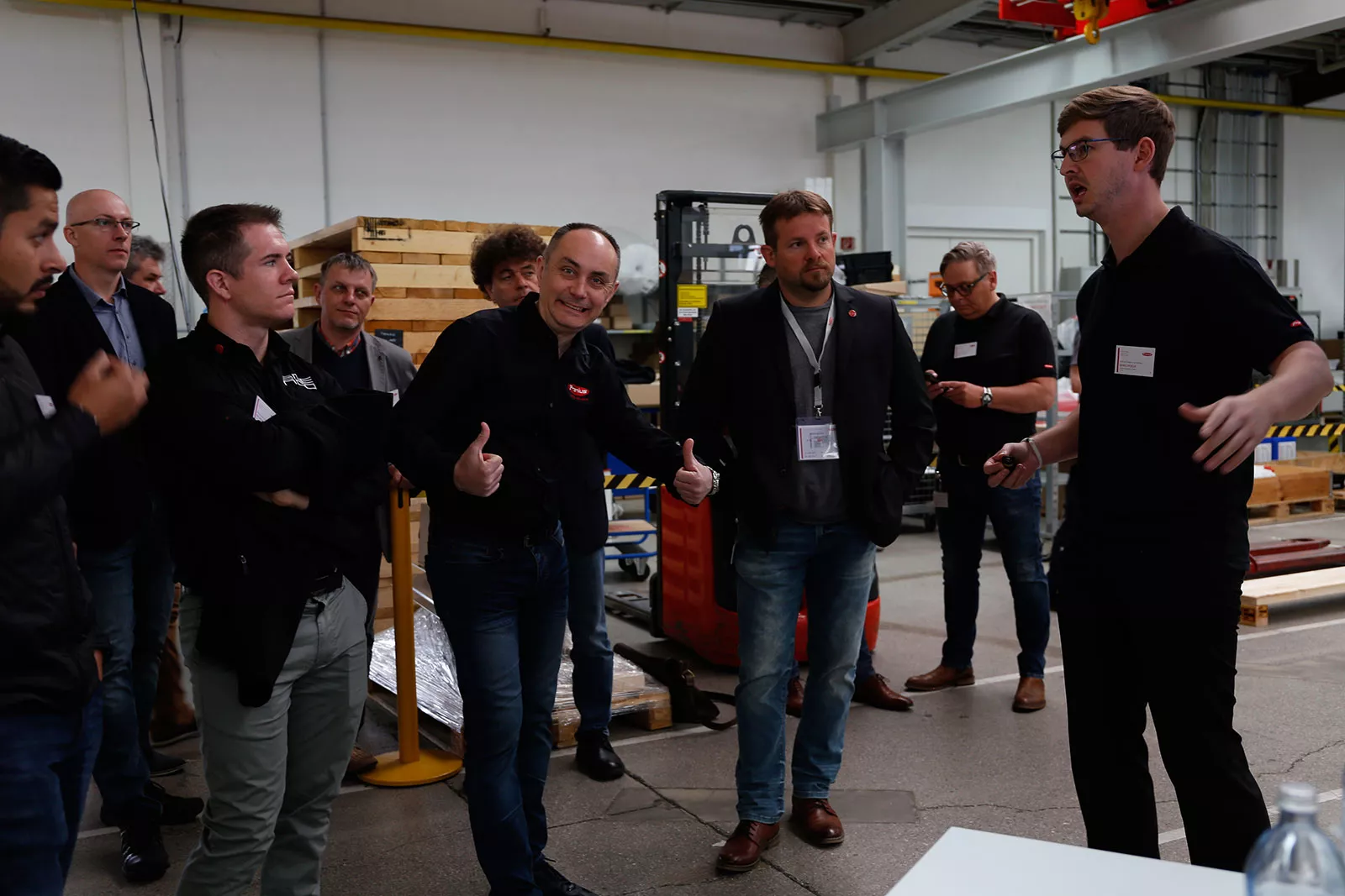 It was Thursday morning: 40 people had arrived at the WA building. How are industrial skillets welded? At the start of the event, an introductory video gave the visitors an insight into the sector and provided them with a fascinating first impression of the exciting world of Welding Automation. The welding robots from the Steinhaus production facility did a superb job – the whole audience caught the WA bug!