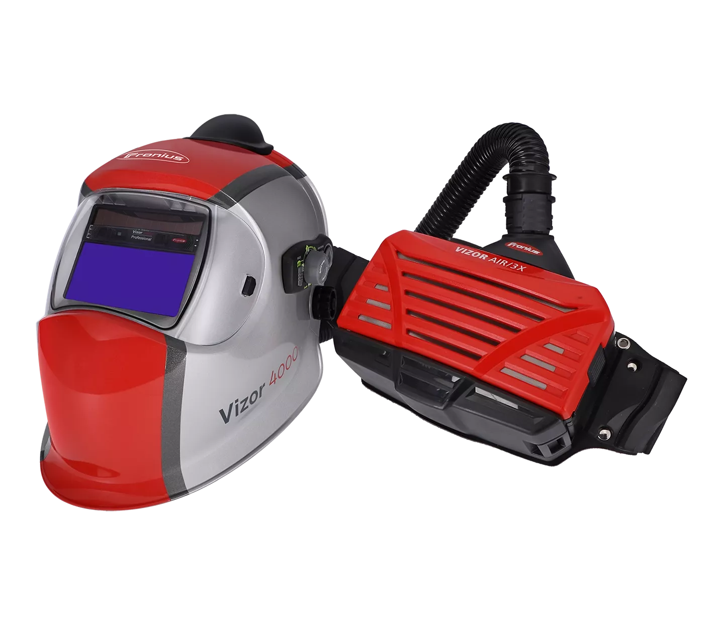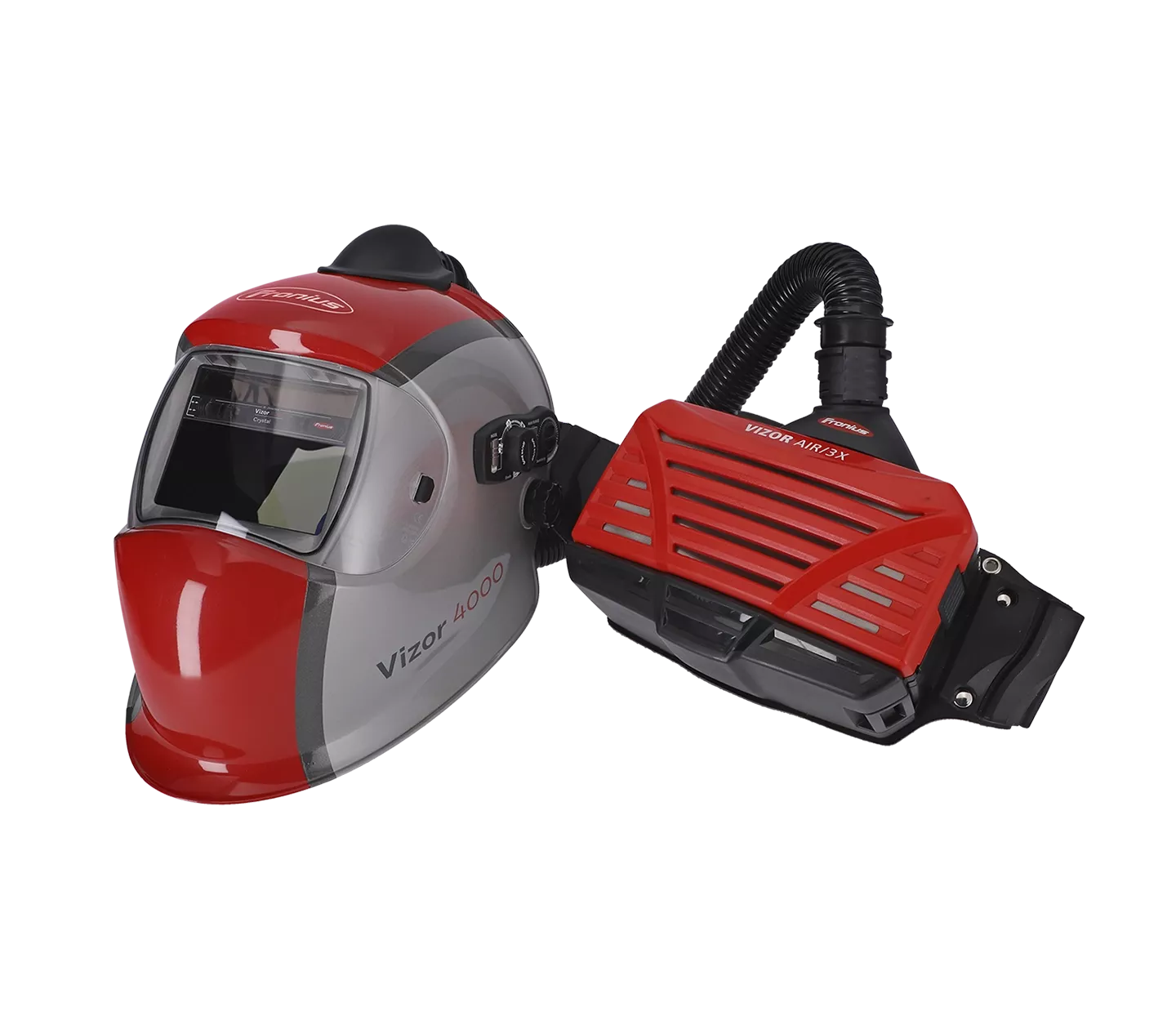 The purified air is fed directly into the welding helmet via the connecting hose—for fresh air and unbeatable protection during every welding task.
