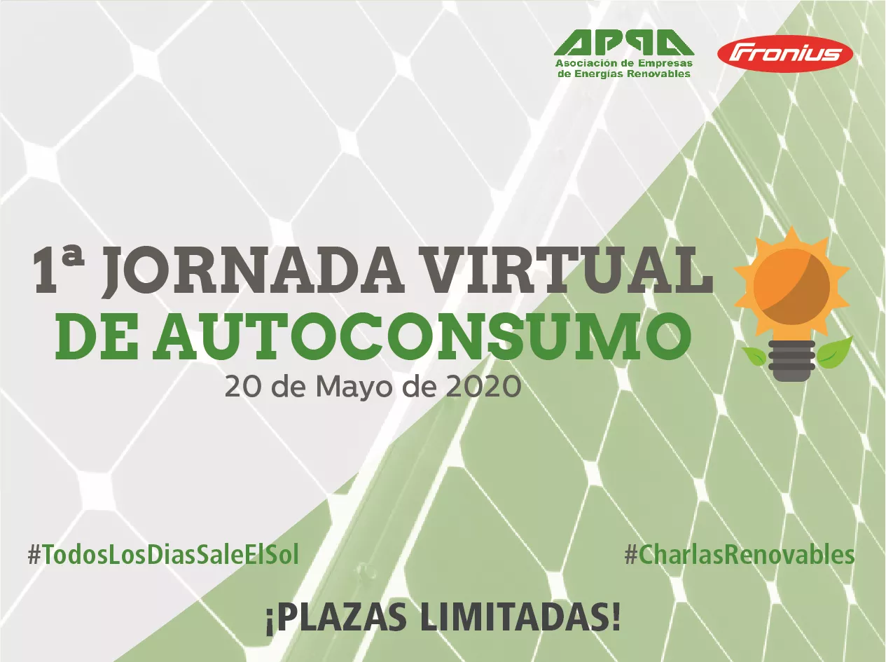 La 1ª Jornada Virtual de Autoconsumo, organizada por APPA Renovables y Fronius, consistirá en una serie de conferencias en varias mesas redondas, en un espacio virtual e interactivo.