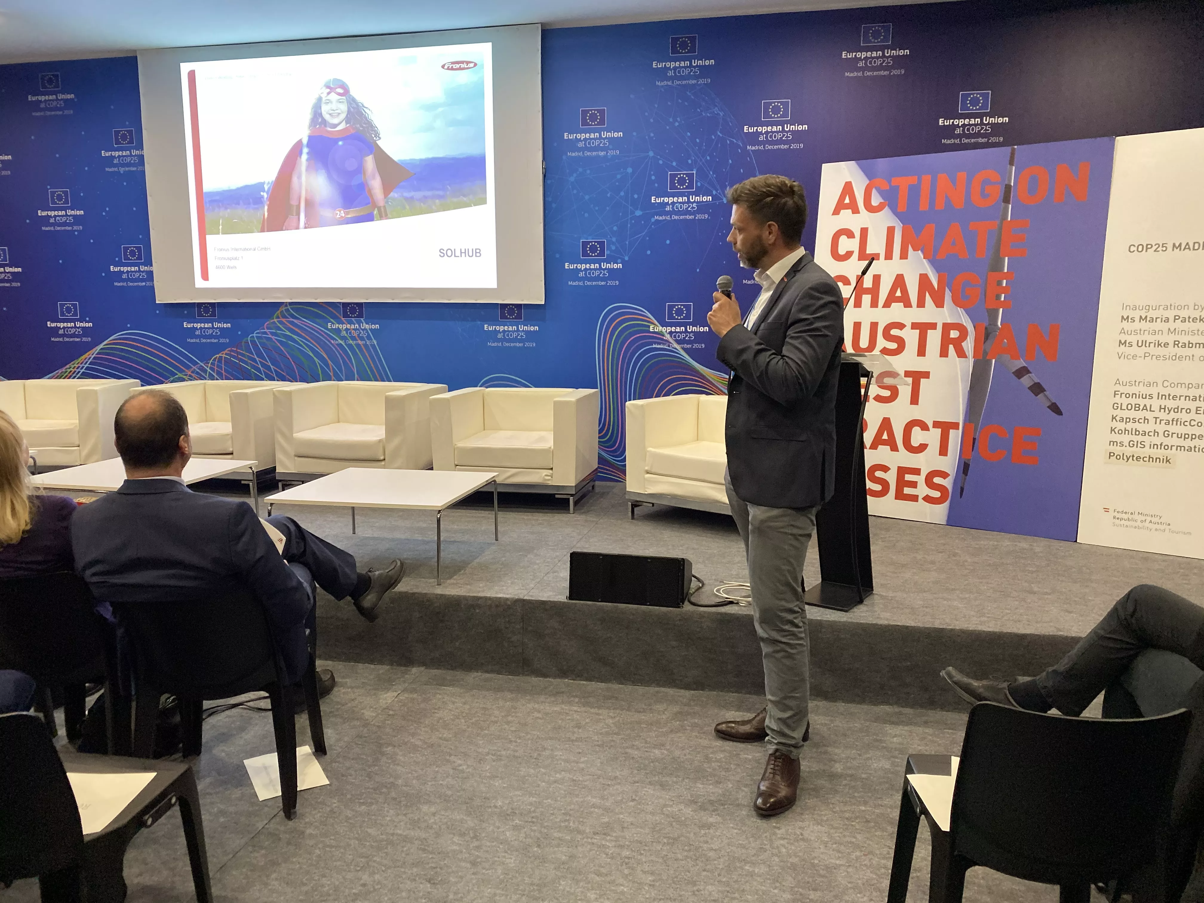 “Nuestro innovador sistema, el Fronius Solhub, para la generación, uso y almacenamiento local de hidrógeno verde, es una solución energética y de movilidad para empresas y municipios. El exceso de hidrógeno se puede almacenar y convertir de nuevo en electricidad más tarde. Como parte de nuestra visión de "24 horas de sol", trae el verano al invierno", expuso Wolfgang Hink, Responsable del proyecto y orador en la Conferencia sobre cambio climático de la ONU.