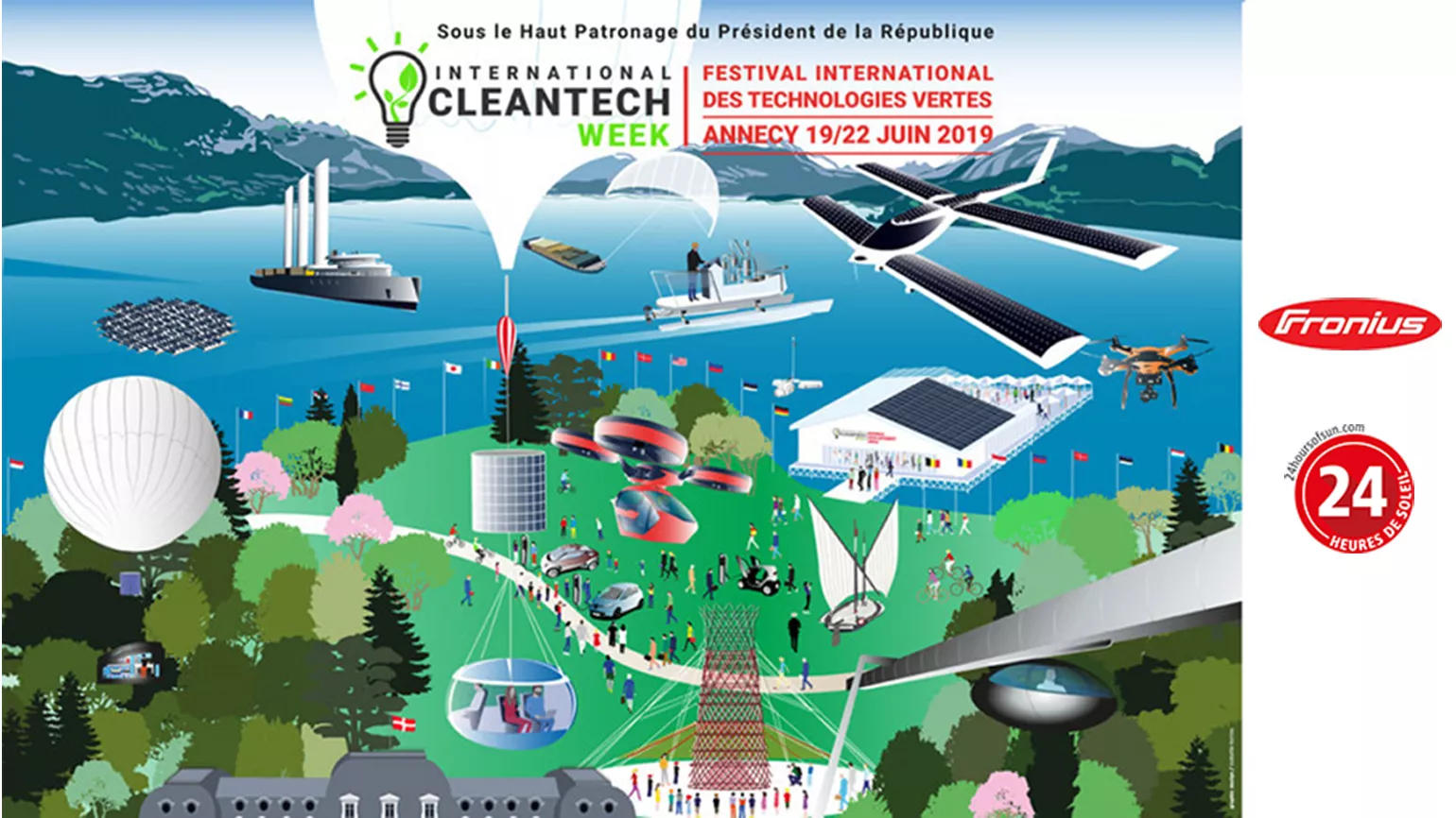 Fronius France a l'honneur de soutenir la 2ème édition de l’International CleanTech Week (Association le 5ème Elément) qui se déroulera dans les Jardins de l’Impérial à Annecy, du 19 au 22 juin 2019. Cet évènement, sous le Haut Patronage du président de la République Française, en partenariat avec la région Rhône Alpes et d’autres grand partenaires est un évènement inédit. Il a pour objectif de réunir les grands acteurs des innovations vertes et de la mobilité durable afin de sensibiliser tous les publics à notre climat, environnement et son avenir.
