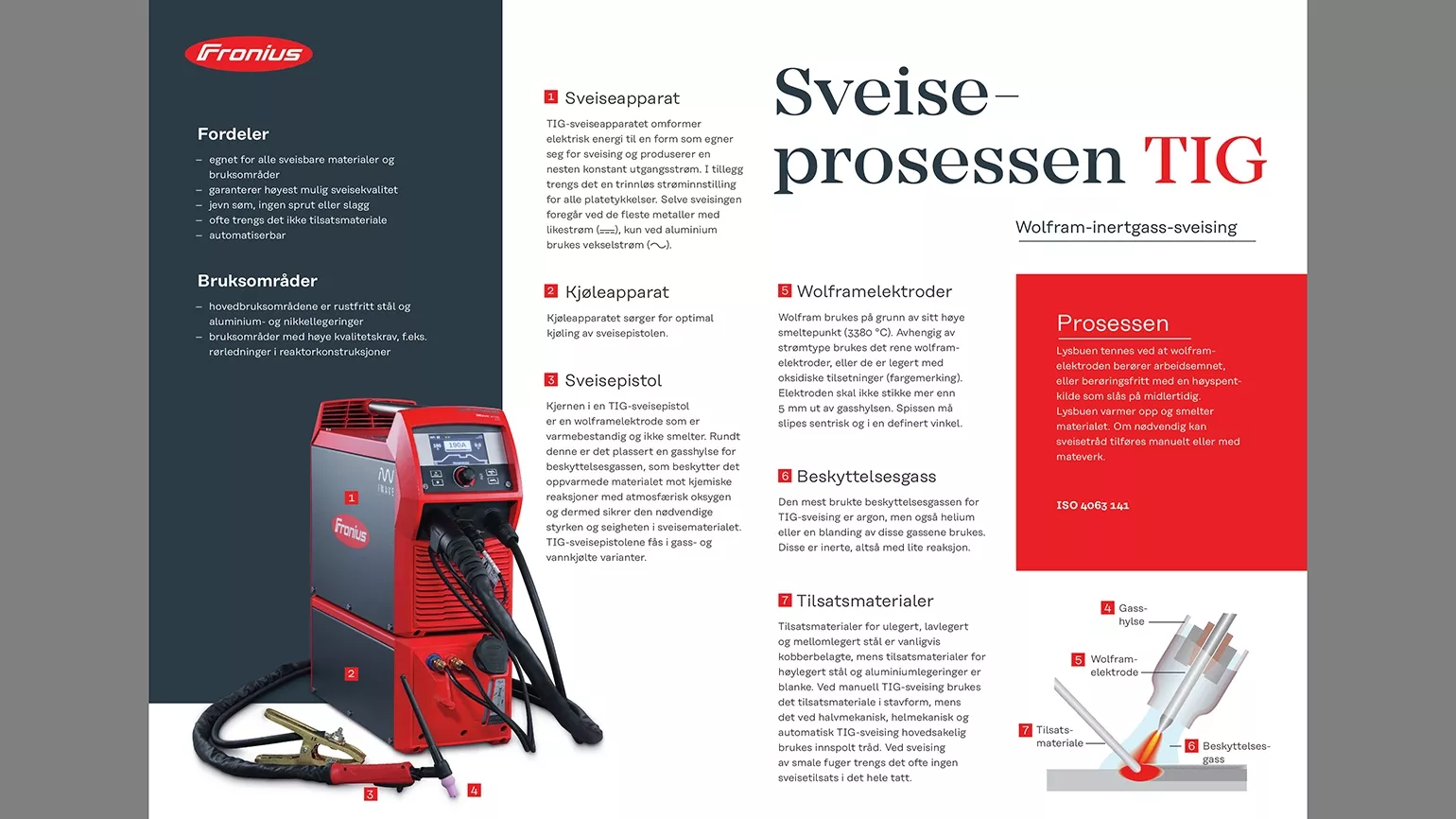 Plakaten byr på grunnleggende kunnskaper om sveiseprosessen TIG.